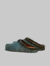 Fussbett sabot in long-haired calfskin. Leather anatomic insole. Ribbed rubber sole. Made in Italy MODEL SBMR000600P800600B53 COMPOSITION Upper: 100% Calf Hair - Lining: 100% Calf Leather - Inside: 100% Calf Leather - Sole: 100% Rubber