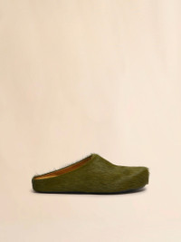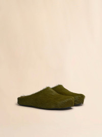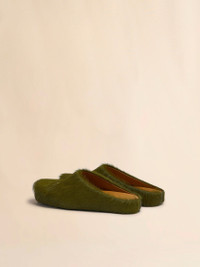 DEEP GREEN LONG HAIR CALFSKIN FUSSBETT SABOT