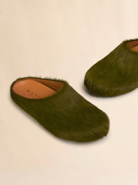 Fussbett Sabots in long calf hair. Barefoot feeling. Fussbett leather insole. Ribbed rubber sole. Made in Italy MODEL SBMR000600P412200V58 COMPOSITION Upper: 100% Calf Hair - Inside: 100% Calf Leather - Sole: 100% Rubber
