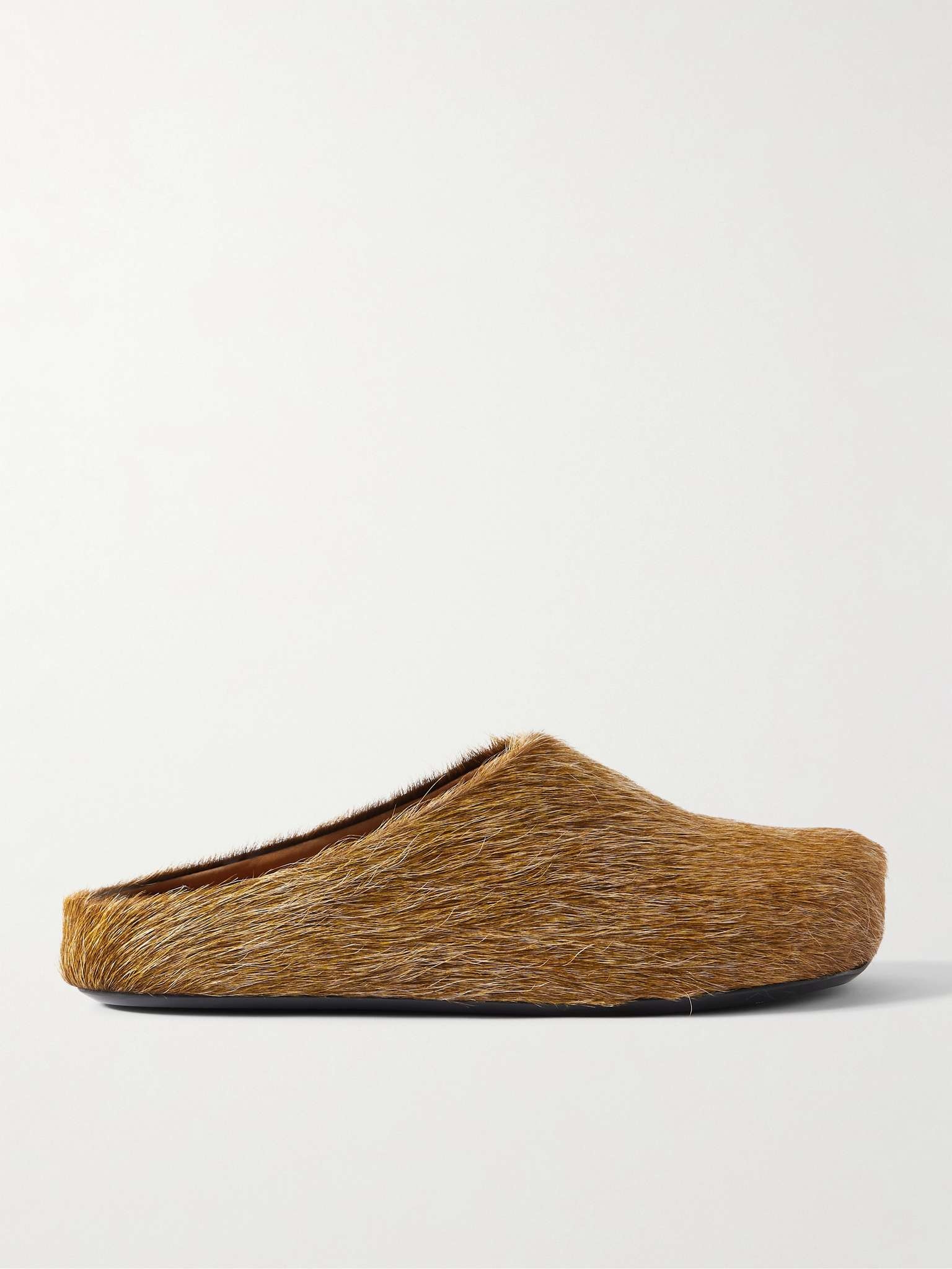 Marni's 'Fussbett' slippers are designed for confident dressers who want to round off a bold outfit or simply add a statement to something more pared back. They've been made in Italy from brown calf hair and have comfortable contoured footbeds. Size & Fit - Fits true to size. Take your normal size - Only available in full sizes, go up to the nearest whole size if you take a half size - European sizing Details & Care - Brown calf hair