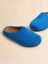 Fussbett Sabot in long hair leather. Barefoot feeling. Fussbett inner sole in leather. Ribbed rubber sole. Made in Italy MODEL SBMR000600P412200B57 COMPOSITION Upper: 100% Calf Hair - Inside: 100% Calf Leather - Sole: 100% Rubber