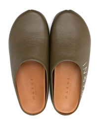 Fussbett sabot Highlights - Khaki - Calf leather - Pebbled texture - Slip-on style - Embroidered logo to the side - Round toe - Branded leather insole - Contrast lining - Rubber sole Made in Italy Composition Outer: Calf Leather 100% Lining: Calf Leather 100% Sole: Rubber 100% SIZE & FIT Measurement HEEL 1.57 in(4 cm)