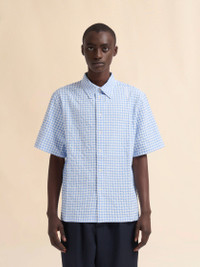 LIGHT BLUE AND WHITE SEERSUCKER CHECKED SHIRT