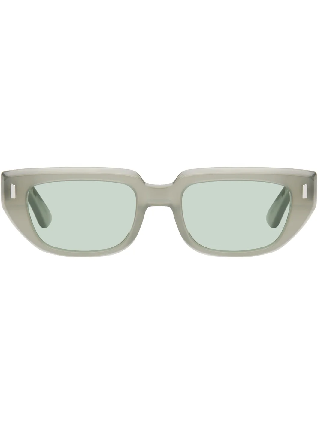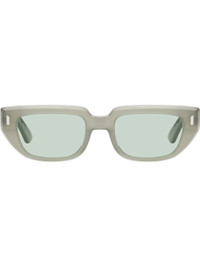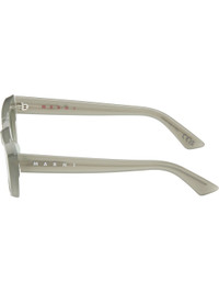 Handcrafted rectangular semi-transparent acetate-frame sunglasses in gray. · Blue lenses · 100% UV protection, category 1 · Integrated nose pads · Logo etched at temples · Exposed core wires · Includes pouch · Size: 53.21 145 Supplier color: Light grey Acetate. Made in Italy 252379M134018