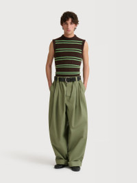 GREEN CANVAS PANTS WITH PLEATS
