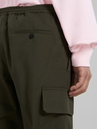 GREEN GABARDINE CARGO PANTS WITH DRAWSTRING WAIST