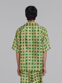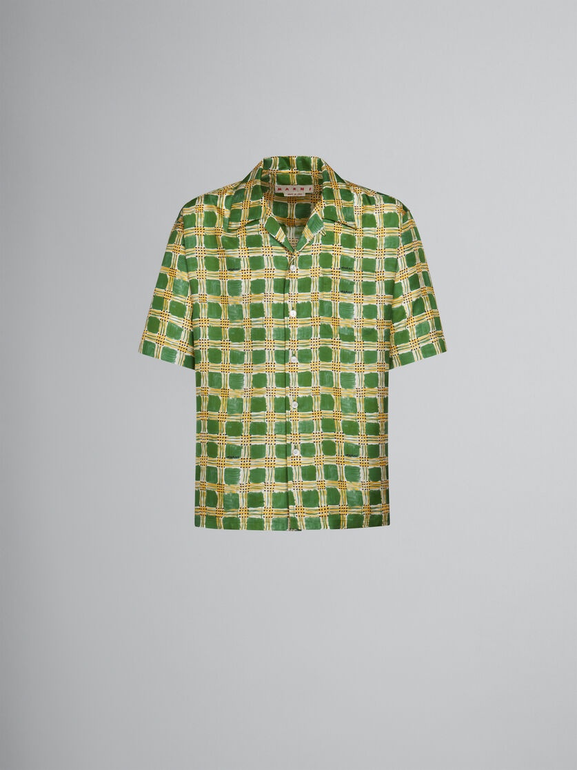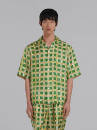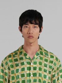 GREEN SILK TWILL SHIRT WITH CHECK FIELDS PRINT