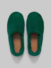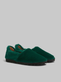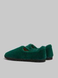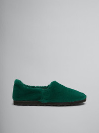GREEN SLIP-ON LOAFER IN FAUX FUR