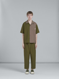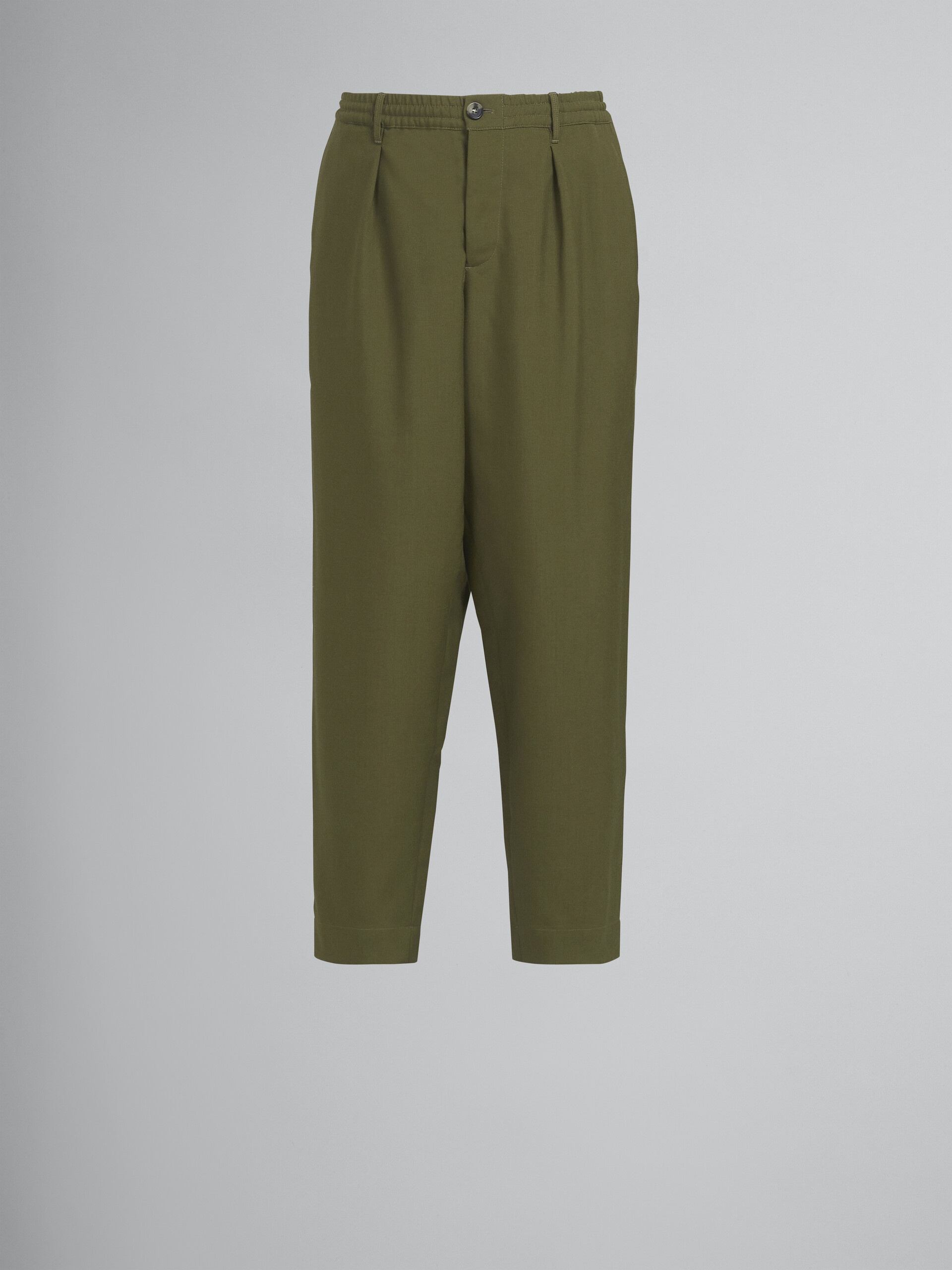 GREEN TROPICAL WOOL CROPPED TROUSERS