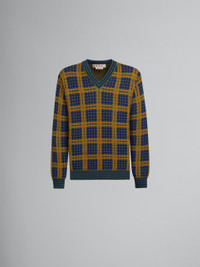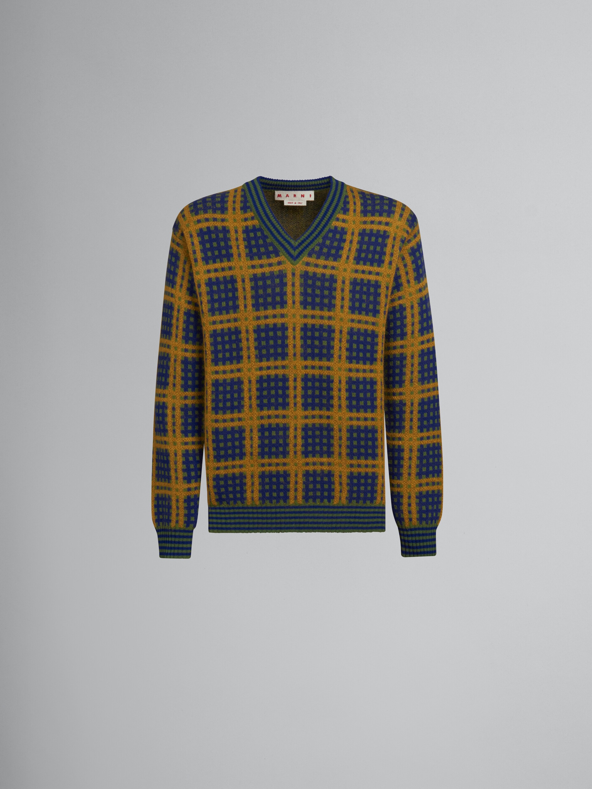V-neck jumper knitted from a virgin wool and mohair blend. Styled with a '50s check pattern and striped trims. DETAILS FIT The model is 6' 0.5". The model is wearing size 48 IT. COMPOSITION Primary Fabric: 70% Virgin Wool Knit 20% Mohair Knit 8% Polyamide Knit 2% Wool Knit