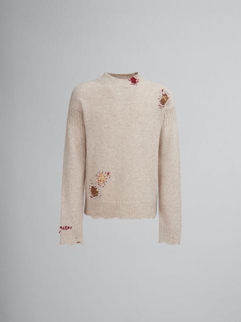 GREY SHETLAND WOOL JUMPER WITH MARNI MENDING PATCHES