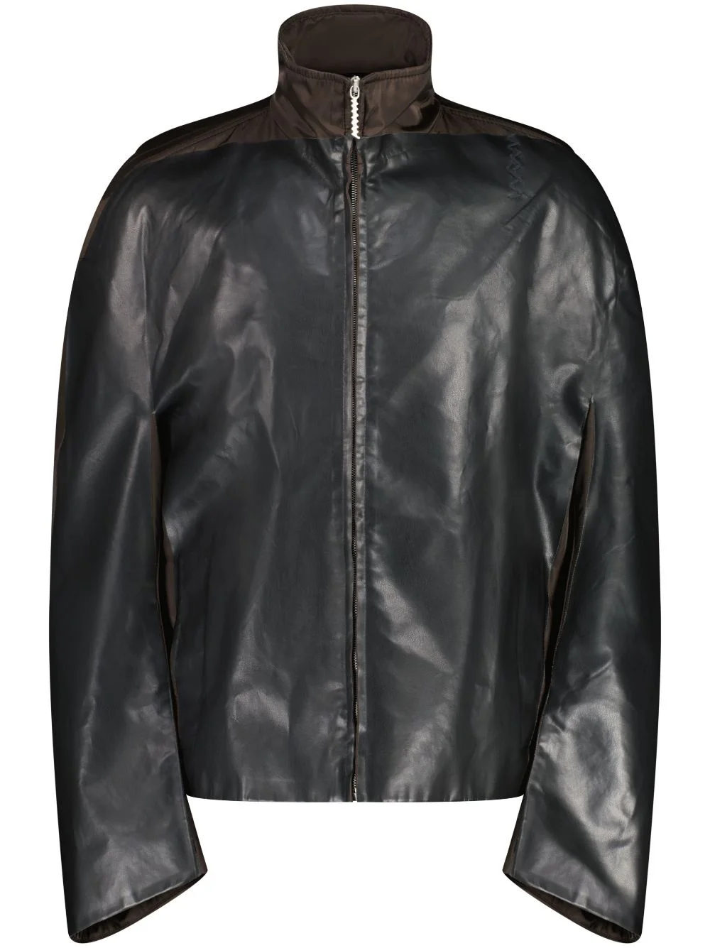 zip-up jacket Highlights - Black - Front zip fastening - Stand-up collar - Long sleeves - Straight hem Made in Italy Composition Polyamide 70%, Leather 30%