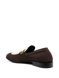 sock-style chain-print loafers dark brown calf leather sock-style ankle chain-link detailing round toe branded insole flat rubber sole Made in Italy Composition Outer: Polyester 100% Sole: Rubber 100% Lining: Calf Leather 100%, Fabric 100%