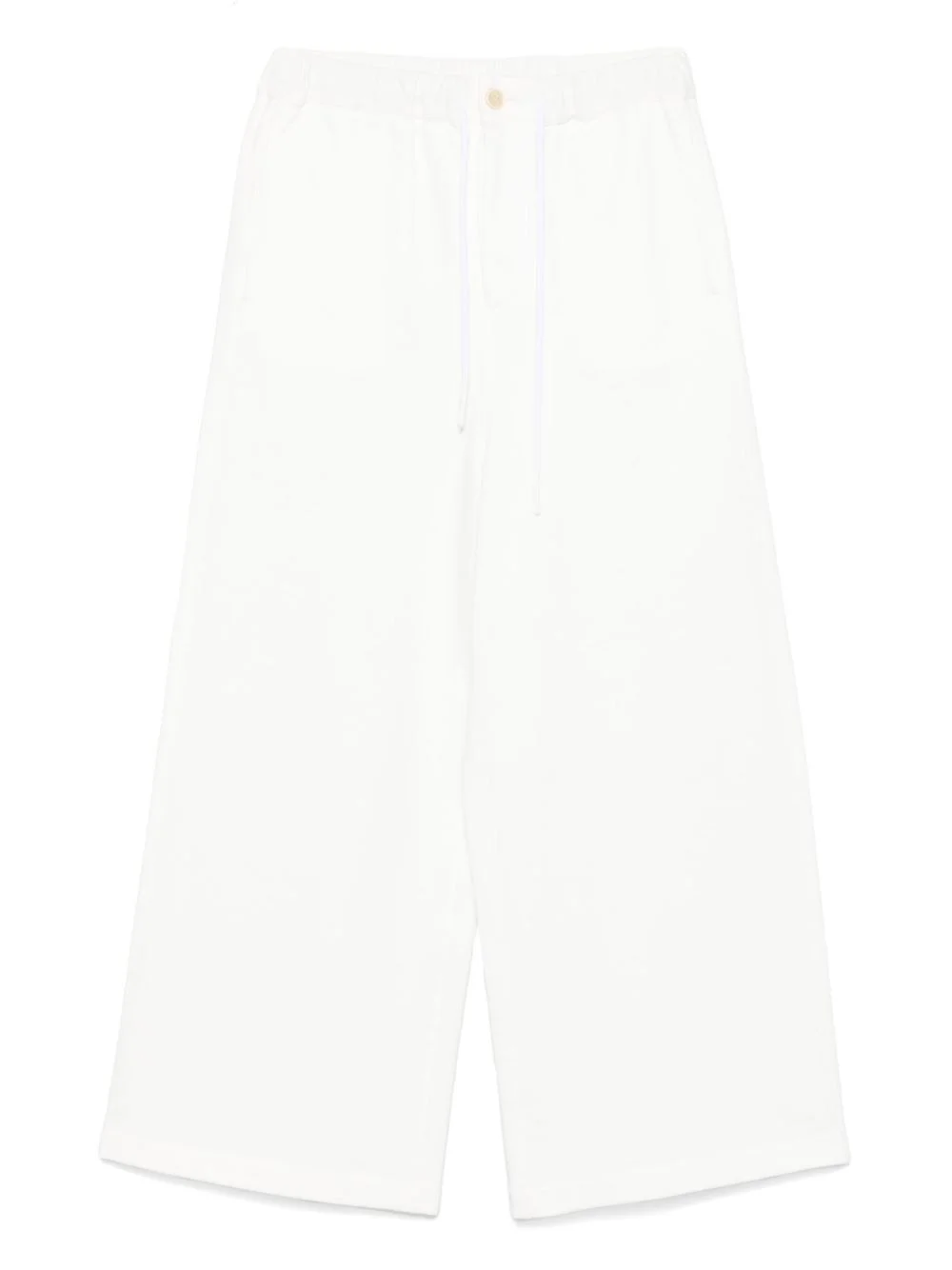 jersey track pants Highlights - White - Concealed front button fastening - Elasticated drawstring waistband - Two side slit pockets - Rear welt pocket Made in Italy Composition Outer: Cotton 50%, Organic Cotton 50% Lining: Cotton 100% SIZE & FIT Model measurements Height 6 ft 0 in(1.84 m) Bust/Chest 35.82 in(91 cm) Hips 37 in(94 cm) Waist 28.34 in(72 cm) FittingInformation Designed with a wide leg, offering a loose and roomy fit The elasticated waist allows for a comfortable fit Made from a midweight non-stretch fabric, this piece offers minimal elasticity when worn