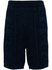 NAVY BLUE COTTON PATTERNED INTARSIA KNIT RIBBED WAISTBAND TWO DIAGONAL POCKETS TO THE SIDES RIBBED HEM KNEE-LENGTH