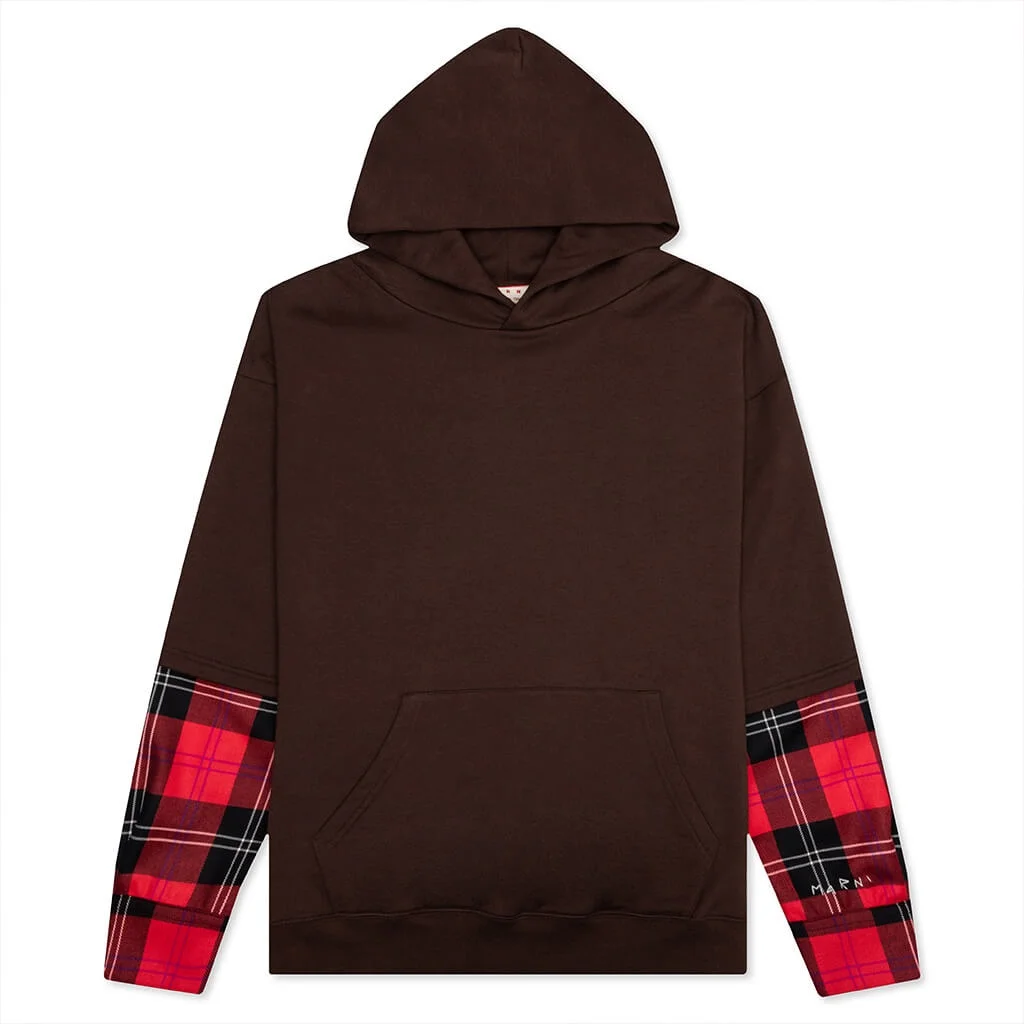 The Marni Layered Hooded Sweatshirt from Marni is ideal for the fall season. Crafted from cotton, the design is made for an oversized fit and embodies a collegiate-inspired fit. The design includes a fixed hood along with a kangaroo pouch pocket for optimal comfort. The hybrid sleeve detailing completes the design. - 100% cotton - Oversized fit - Fixed hood - Sleeve detailing - Style No: FUMU0110XQ UTC190 00M75