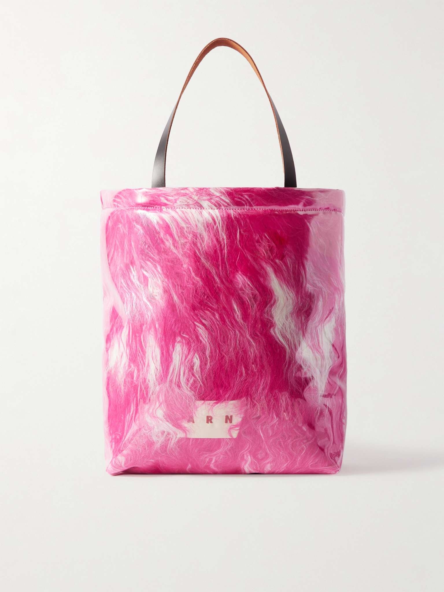 Sure to add a fun note to any outfit, Marni's tote bag has been crafted in Italy from pink and white faux fur that's laminated with PVC to protect its wispy fibres and add a further textural dimension. Sturdy leather top handles provide firm grip. Size & Fit - Handle Length: 19cm / 7.5in - Height: 38cm / 15in - Width: 32cm / 12.6in Details & Care - Pink and white faux fur, clear PVC, black and tan leather - Two top handles - Designer emblem - Internal slip pocket - Fully lined - This bag has a capacity of approximately 17 litres - Made in Italy
