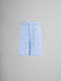 Gingham technical cotton seersucker Bermuda shorts. Relaxed fit with elasticated drawstring waist and back welt pockets. Finished with a Marni Symbol label on the back right pocket. MODEL PUMU0291A0UTN929CHB21 FIT The model is 6' 1". The model is wearing size 48 IT. COMPOSITION Primary Fabric: 51% Polyamide Woven 49% Cotton Woven - Pocket Lining: 100% Cotton Woven