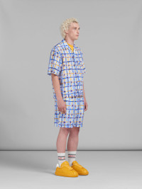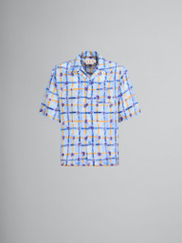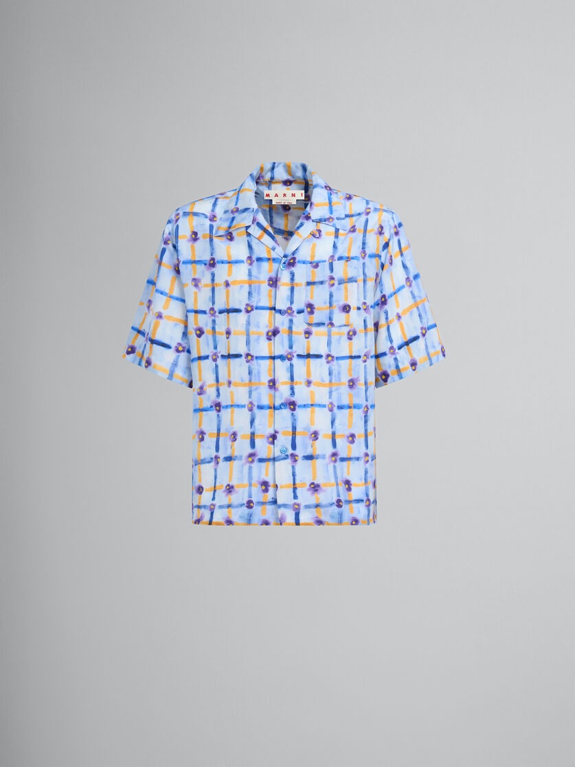 Short-sleeved bowling shirt made from Habotai silk, featuring this season's Saraband flower-check print. Boxy fit with chest pocket. Button closure. Can be worn with a bowling collar or fully buttoned up. Made in Italy. DETAILS FIT The model is 6' 2". The model is wearing size 48 IT. COMPOSITION Primary Fabric: 100% Silk Woven