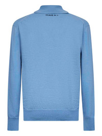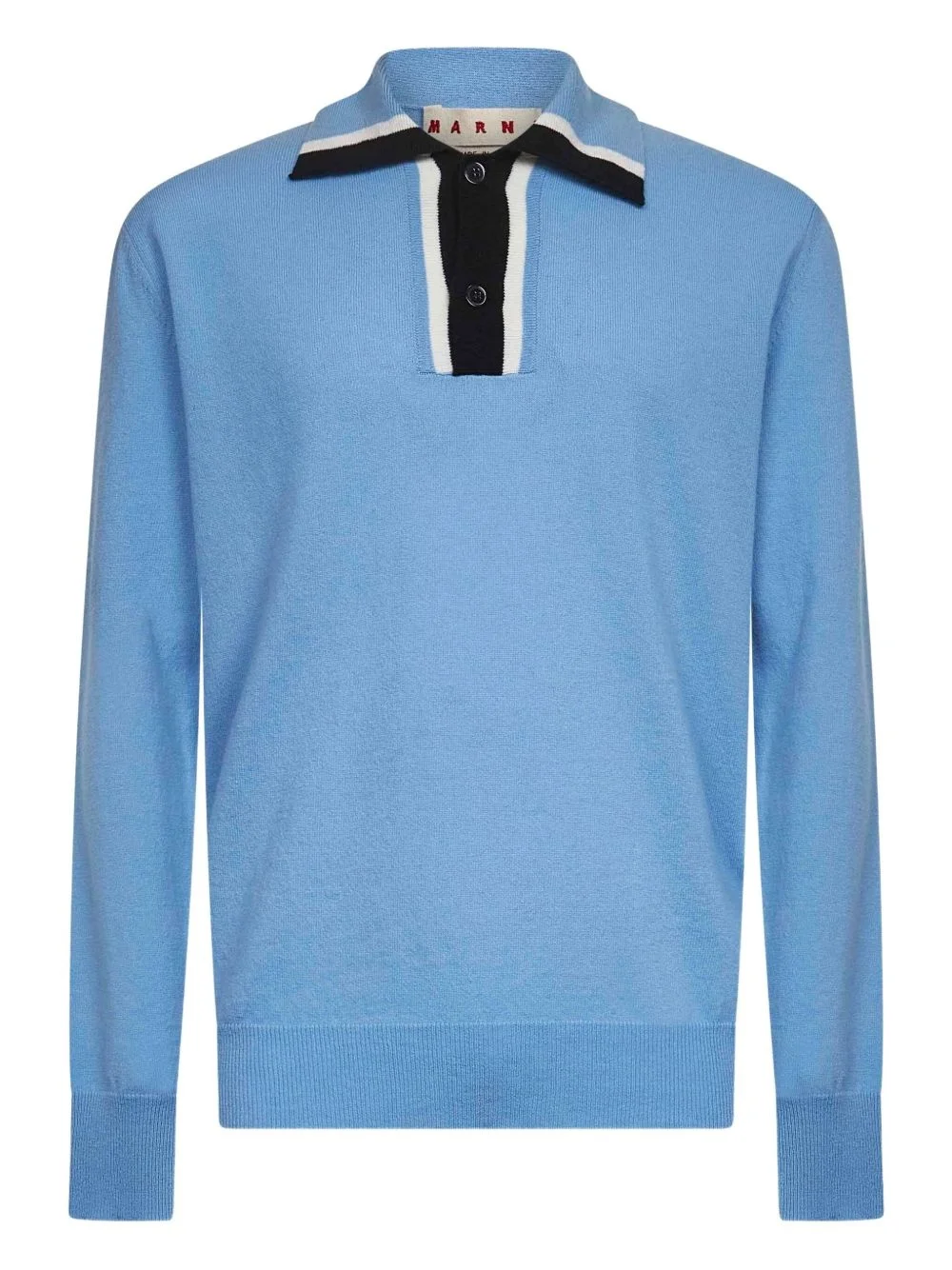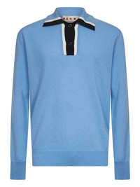 ribbed-collar striped polo shirt Highlights - Light blue - Ribbed polo collar - Two-button placket - Long sleeves - Ribbed cuffs - Hand-stitched embroidery Made in Italy Composition Virgin Wool 100% Washing instructions Read Manufacturer Guidelines