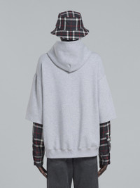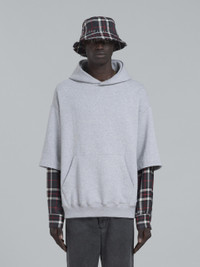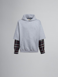 Hooded brushed cotton sweatshirt with contrasting wool tartan shirt sleeves. Kangaroo pouch. Loose fit. Made in Italy. DETAILS COMPOSITION Primary Fabric: 100% Cotton Knit - Secondary Fabric: 100% Virgin Wool Woven - Third Fabric: 100% Cotton Knit