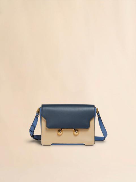 Trunkaroo medium rectangular shoulder bag crafted from calfskin leather. Colour block design. Front flap with magnetic closure, featuring engraved Marni lettering and oversized stud details. Contoured base on the front and back. One compartment with inside pocket. Lined in nappa leather. Detachable and adjustable buckled shoulder strap: can also be worn as a clutch. This product is made using leather from a Leather Working Group medalled tannery. LWG supports more responsible leather manufacturing across the globe. Made in Italy MODEL SBMP0195U1P6948ZO878 COMPOSITION Body: 100% Calf Leather - Lining: 100% Ovine Leather - Metallic Parts: 100% Brass - Metallic Parts: 100% Steel