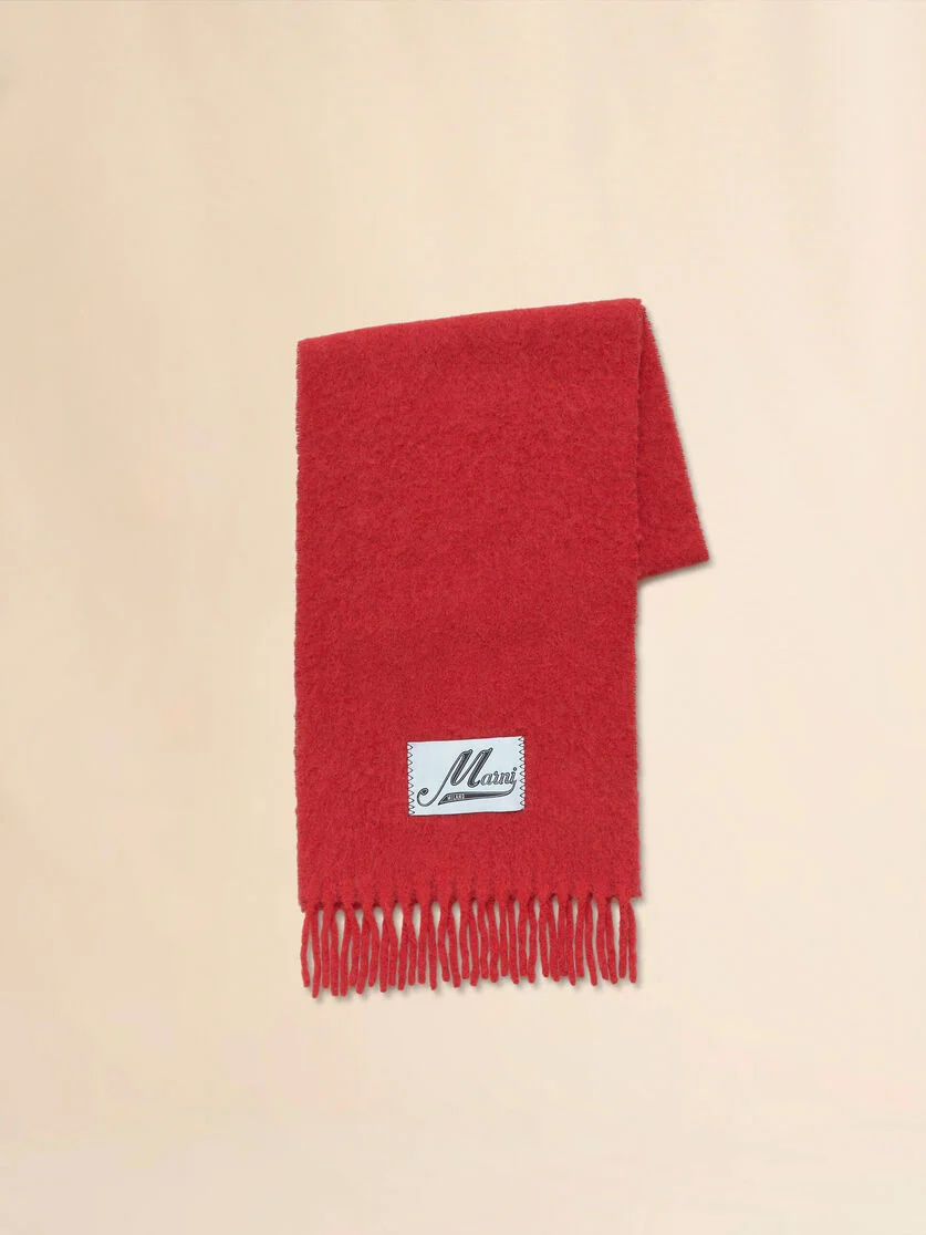 RED BRUSHED ALPACA SCARF WITH FRINGES