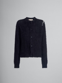 Long-sleeved cardigan made from solid-color brushed mohair. Crewneck style with a regular fit. Front button closure. Finished with handcrafted Marni Mending embroidery on the front. Made in Italy MODEL CDMG0150A0UFU17200N99 COMPOSITION Primary Fabric: 38% Acetate Knit 32% Polyamide Knit 30% Mohair Knit