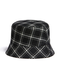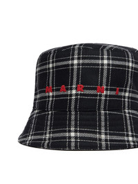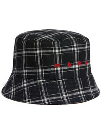 logo-embroidered checked bucket hat Highlights - Black/white - Cotton/virgin wool - Check pattern - Embroidered logo to the front - Flat crown - Narrow brim Made in Italy Composition Lining: Cotton 100% Outer: Virgin Wool 100%