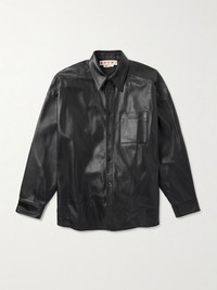 Marni's leather jacket is meant to be worn as a shirt—it has the same point collar and rounded hem as traditional styles. It's been made in Italy and cut for a boxy fit, should you choose to layer it over a tee or rollneck. Size & Fit - Fits true to size. Take your normal size - Designed for a boxy fit - Dropped shoulder seam - Supple, non-stretchy leather - Model is shown wearing an IT 48 - Model measures: chest 38"/ 96cm, height 6'0"/ 183cm Details & Care - Black leather - Button fastenings - 100% leather (Lamb) - Dry clean