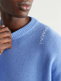 Marni's sweater is cosy, soft and pleasingly colourful, too. Knitted from pure cashmere, it has dropped shoulder seams for a relaxed shape and a hand-embroidered logo on the shoulder. Size & Fit - Fits true to size. Take your normal size - Designed for a regular fit - Mid-weight knit - Model is shown wearing an IT 48 - Model measures: chest 38"/ 96cm, height 6'3"/ 191cm Details & Care - Blue cashmere - 100% cashmere - Dry clean
