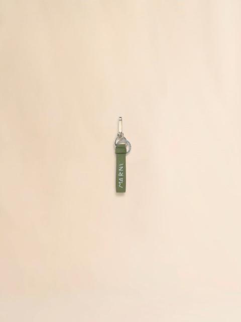 Metal keyring with carabiner hook. Milled calfskin leather strap, hand-embellished with a contrast Marni Mending logo with flower detail. Palladium hardware with engraved Marni lettering. Made in Italy MODEL PCMI0018A2P653300N99 COMPOSITION Body: 100% Calf Leather - Contrast: 100% Polyester - Metallic Parts: 100% Zama - Metallic Parts: 100% Steel