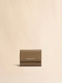 Trifold wallet crafted from milled calfskin leather. Hand-stitched Marni Mending logo on the front. Snap button closure. Zip coin pocket, note compartment, and six card slots. Made in Italy MODEL PFMI0105U0P653300V49 COMPOSITION T1 100% PBV - T2 100% PL - T3 100% PVN - T4 100% VI - T5 100% OTN - T6 100% ZAMA