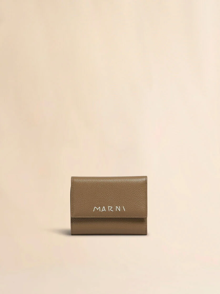 BROWN LEATHER TRIFOLD WALLET WITH MARNI MENDING