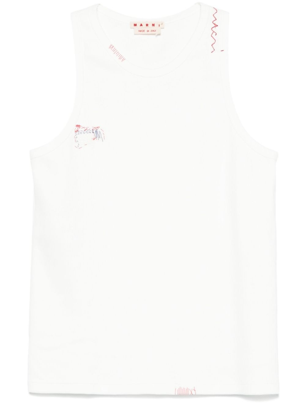 logo-embroidered tank top Highlights - White - Decorative stitching - Scoop neck - Racerback Made in Italy Composition Organic Cotton 98%, Elastane 2% SIZE & FIT Model measurements Height 6 ft 1 in(1.85 m) Bust/Chest 35.82 in(91 cm) Hips 37.79 in(96 cm) Waist 29.13 in(74 cm) FittingInformation Designed for a slim fit, offering a comfortable fit that sits just away from the body Made from a midweight stretch fabric, this piece offers elasticity and flexibility when worn