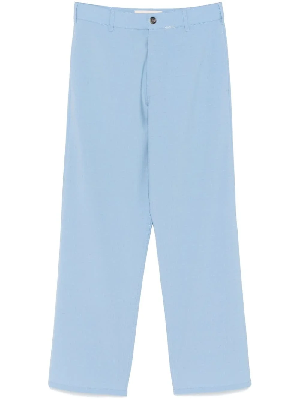 Mending-logo straight-leg trousers Highlights - Black - Straight leg - Embroidered mending logo - Concealed fly and button fastening - Belt loops - Two side inset pockets - Two rear button-fastening pockets Made in Italy Composition Outer: Polyester 53%, Virgin Wool 43%, Elastane 4% Lining: Cotton 100%, Viscose 52%, Cupro 48% SIZE & FIT Model measurements Height 6 ft 2 in(1.87 m) Bust/Chest 37.79 in(96 cm) Hips 37.79 in(96 cm) Waist 30.31 in(77 cm) FittingInformation Designed for a straight-leg, allowing for an unrestricted and comfortable fit over the leg Made from a midweight stretch fabric, this piece offers elasticity and flexibility when worn