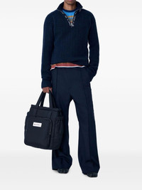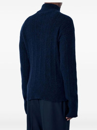 logo-embroidered ribbed-knit sweater Highlights - Navy blue - Ribbed knit - Stand collar - Front half-zip fastening - Long sleeves - Logo-embroidery Imported Composition Wool 90%, Cashmere 10% Washing instructions Read Manufacturer Guidelines
