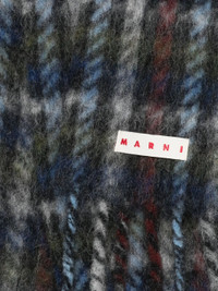 navy blue knitted construction check pattern fringe detailing wraparound style - length: 250.0 centimetres, width: 18.0 centimetres - Color: BLUE - Made in: Italy - Designer Style ID: UAW050 SCZC0077Y0 CHB50 Composition and care Polyamide: 20.0%, Mohair: 28.0%, Virgin Wool: 24.0%, Alpaca Wool: 28.0%