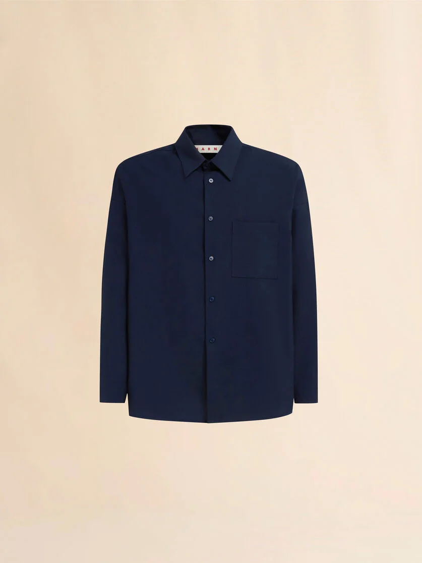Long-sleeved shirt made from tropical wool. Boxy fit with button closure and button cuffs. Chest pocket. Canvas Marni label on the back yoke. MODEL CUMU0061A3TW83900B99 FIT The model is 6' 1". The model is wearing size 48 IT. COMPOSITION Primary Fabric: 100% Virgin Wool Woven