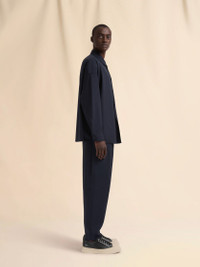 DEEP BLUE TROPICAL WOOL LONG-SLEEVED SHIRT