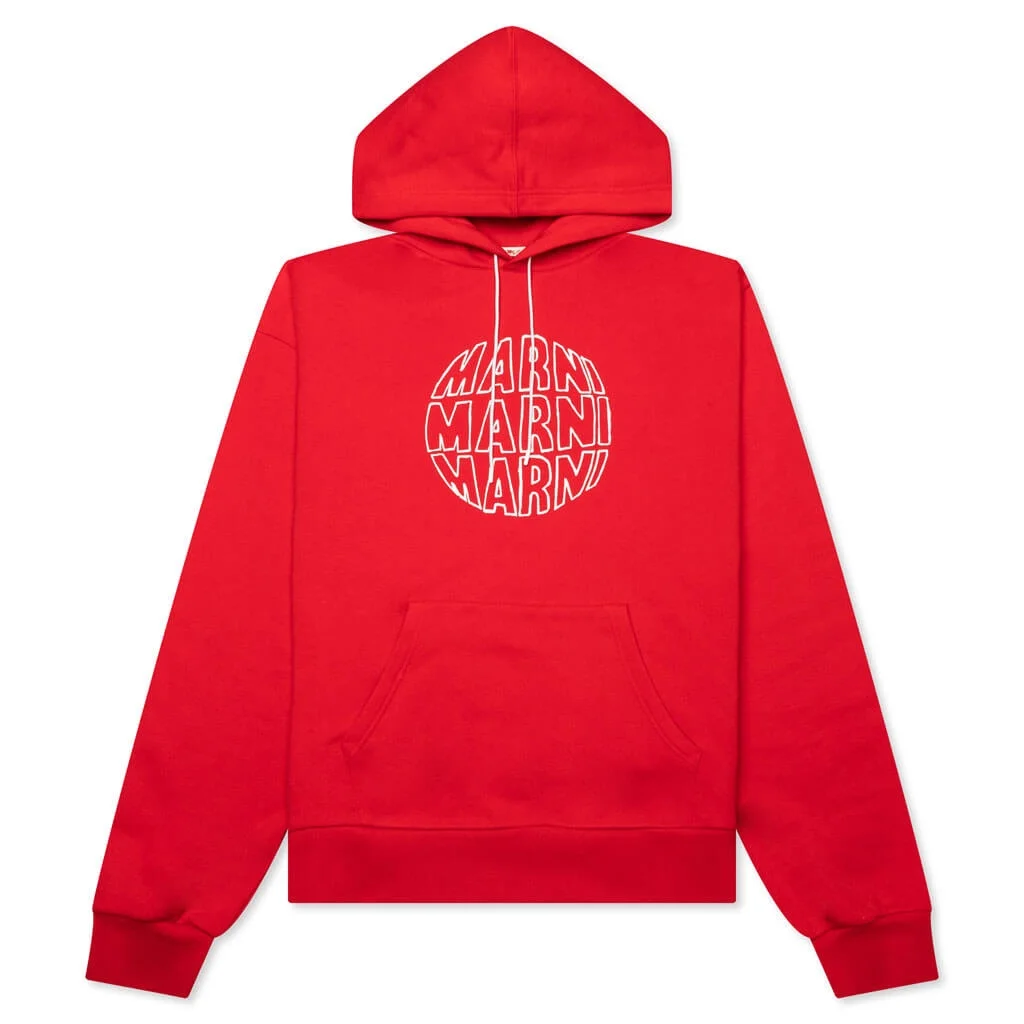 Upgrade your everyday apparel rotation with the Marni Sweatshirt. The contemporary design is constructed with 100% cotton and features a drawstring hood paired with ribbed detailing at the trims. To complete the look, screen-printed Marni branding can be seen on the front. - 100% cotton - Made in Italy - Drawstring hood - Ribbed trims - Screen-printed iconography - Style No: FUMU0073P9 USCV82 CLR64