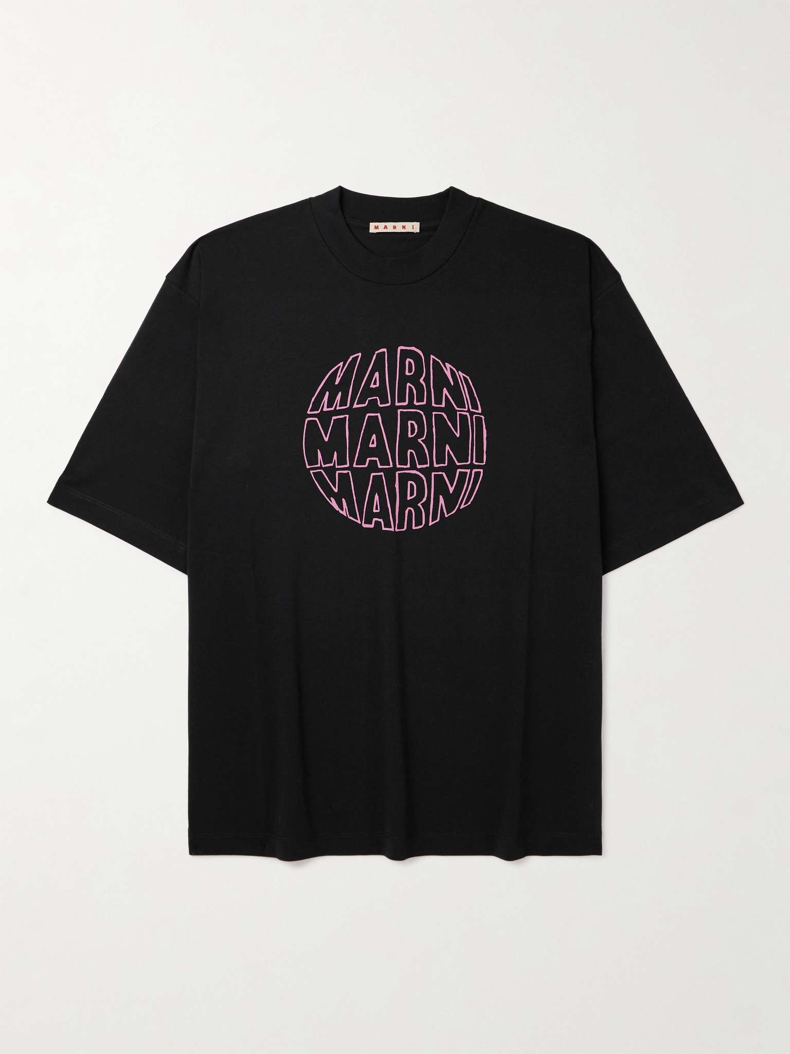 Highlighting Marni's offbeat vibe, the logo print on this T-shirt looks like it was drawn by hand. It's cut from cotton-jersey for a boxy fit with dropped shoulder seams and boxy sleeves. Size & Fit - Fits true to size. Take your normal size - Designed for a boxy fit - Dropped shoulder seam - Lightweight, stretchy fabric - Model is shown wearing an IT 46 - Model measures: chest 36"/ 92cm, height 6'2"/ 188cm Details & Care - Black and pink cotton-jersey - 100% cotton - Machine wash - This item has been imported