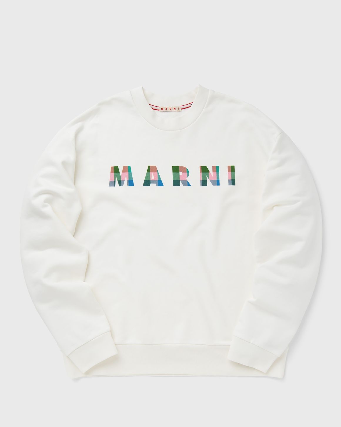The Marni crew-neck sweatshirt in loopback organic cotton jersey is decorated with a large patterned Marni print in a Vichy look. It has a regular fit with ribbed trims at the cuffs and hem. - Round neckline - Long sleeves - Ribbed trims at the cuffs and hem Article Number: FUMU0074PF-GOW02 Gender: Men Color: NATURAL WHITE Material: 100% Cotton