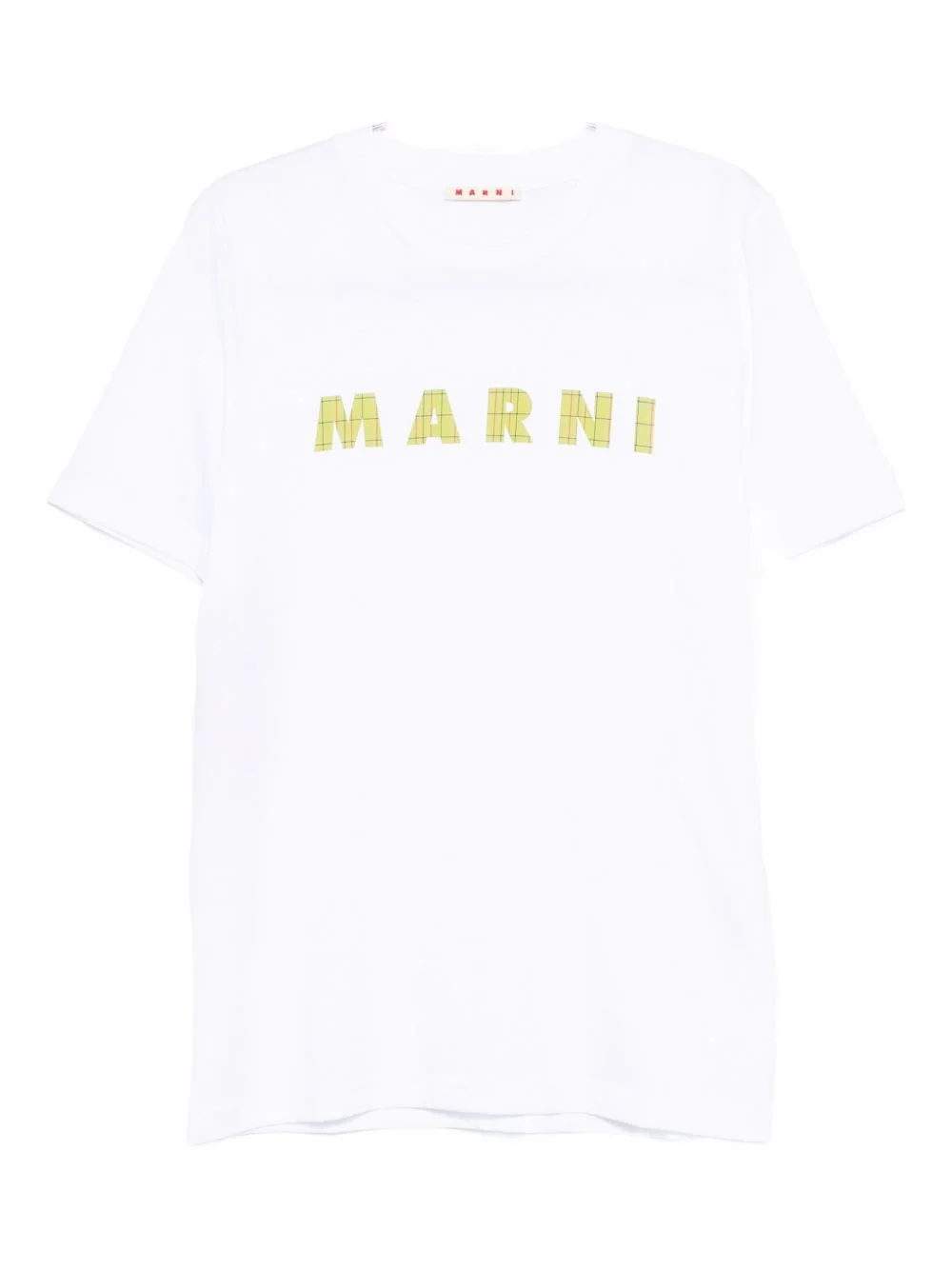 logo-print T-shirt Highlights - Light brown - Crew neck - Short sleeves - Check pattern detail Imported Composition Cotton 100% SIZE & FIT Model measurements Height 6 ft 3 in(1.9 m) Bust/Chest 35.43 in(90 cm) Hips 35.82 in(91 cm) Waist 27.95 in(71 cm) Washing instructions Read Manufacturer Guidelines