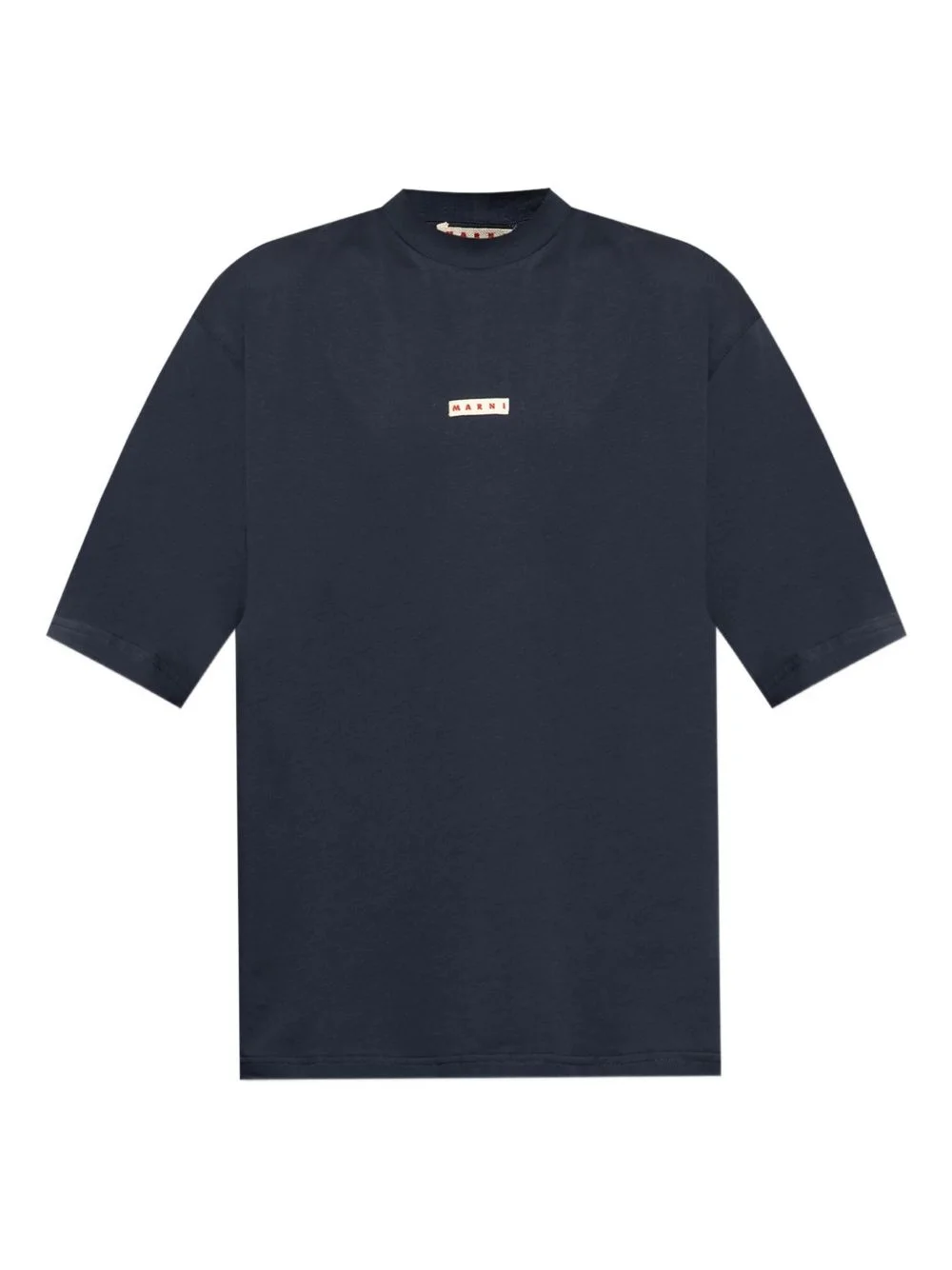 crew-neck logo T-shirt Highlights - Navy blue - Logo detail - Short sleeves - Ribbed neckline Imported Composition Cotton 100% Washing instructions Read Manufacturer Guidelines