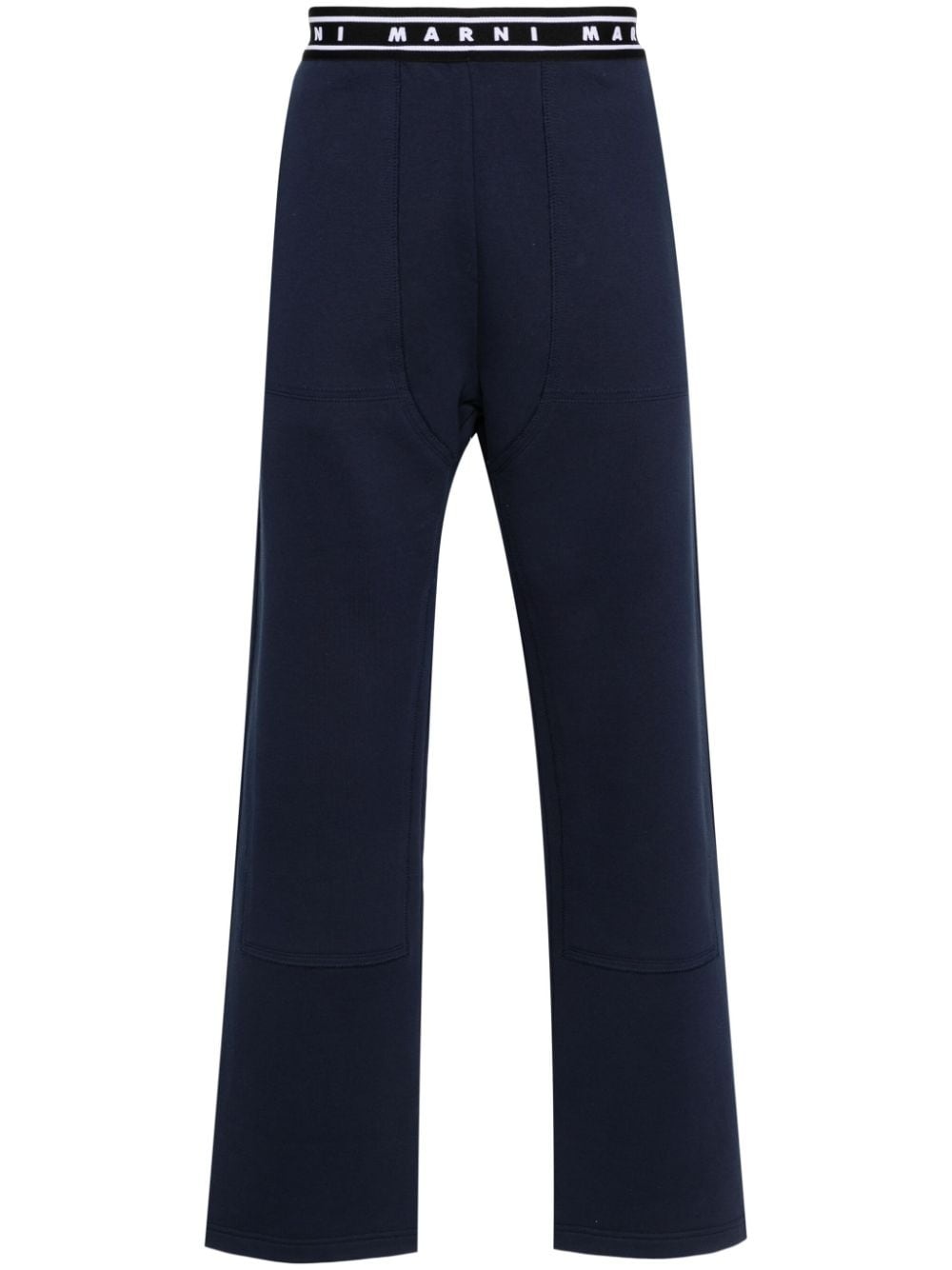 logo-waistband jersey track pants Highlights - Navy blue - Cotton - Jersey texture - Elasticated logo waistband - Two side slit pockets - Wide leg - Rear patch pocket - French terry lining Imported Composition Polyester 100%, Cotton 100% SIZE & FIT Model measurements Height 6 ft 2 in(1.88 m) Bust/Chest 35.03 in(89 cm) Hips 36.22 in(92 cm) Waist 28.34 in(72 cm) FittingInformation Designed for a straight-leg, allowing for an unrestricted and comfortable fit over the leg The elasticated waist allows for a comfortable fit Made from a midweight non-stretch fabric, this piece offers minimal elasticity when worn This piece fits true to size – take your usual size
