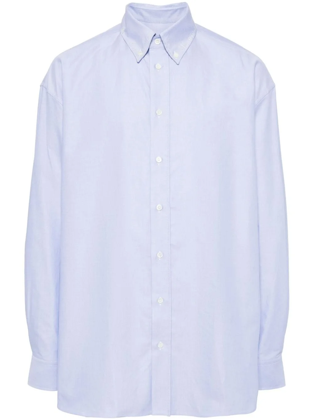 long-sleeve cotton shirt Highlights - Light blue - Cotton - Button-down collar - Front button placket - Drop shoulder - Long sleeves - Buttoned cuffs - Curved hem Made in Italy Composition Cotton 100% SIZE & FIT Model measurements Height 6 ft 2 in(1.87 m) Bust/Chest 34.25 in(87 cm) Hips 36.22 in(92 cm) Waist 29.52 in(75 cm) FittingInformation Designed for a boxy fit, intended for a loose fit throughout Made from a midweight non-stretch fabric This piece fits true to size – take your usual size