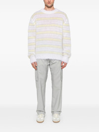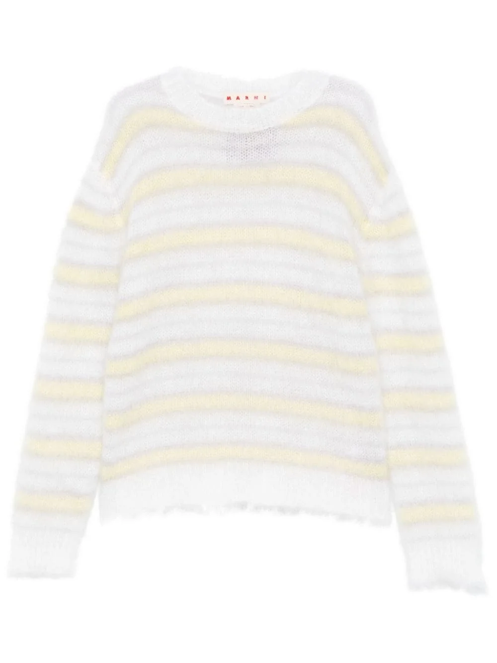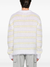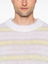 striped sweater Highlights - White/light grey/light yellow - Mohair blend - Open knit - Brushed finish - Horizontal stripe pattern - Crew neck - Drop shoulder - Long sleeves - Ribbed cuffs and hem Made in Italy Composition Mohair 80%, Polyamide 20% SIZE & FIT Model measurements Height 6 ft 2 in(1.87 m) Bust/Chest 37.79 in(96 cm) Hips 37.79 in(96 cm) Waist 30.31 in(77 cm) FittingInformation Designed for a relaxed fit, this piece allows for comfort and movement when worn Made with a lightweight knit, this piece offers some stretch Washing instructions Dry Clean Only