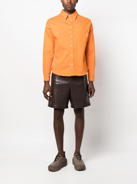 long-sleeved cotton shirt Highlights - Carrot orange - Stretch-cotton - Poplin texture - Button-down collar - Front button fastening - Long sleeves - Buttoned cuffs - Chest patch pocket - Curved hem Made in Italy Composition Cotton 97%, Elastane 3% SIZE & FIT Model measurements Height 6 ft 2 in(1.88 m) Bust/Chest 36.61 in(93 cm) Hips 35.82 in(91 cm) Waist 27.95 in(71 cm) FittingInformation Designed for a relaxed fit, this piece allows for comfort and movement when worn Made from a midweight stretch fabric, this piece offers elasticity and flexibility when worn This piece fits true to size – those with broad shoulders may wish to take one size up Washing instructions Machine Wash