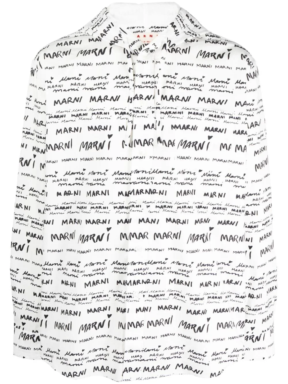 Mega-Marni cotton hooded shirt Highlights - White/black - Cotton - All-over logo print - Buttoned-cuff sleeves - Drawstring hood - Front button fastening - Long sleeves - Chest patch pocket - High-low hem Made in Italy Composition Body: Cotton 100% SIZE & FIT Model measurements Height 6 ft 1 in(1.85 m) Bust/Chest 38.58 in(98 cm) Hips 37 in(94 cm) Waist 30.31 in(77 cm) FittingInformation Designed to be unstructured, offering a loose fit throughout Made from a midweight non-stretch fabric This piece fits true to size – take your usual size Washing instructions Hand Wash